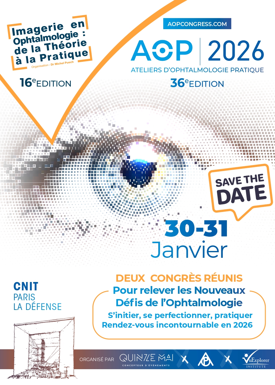 Le congrès Imagerie en Ophtalmologie : de la Théorie à la Pratique évolue en s’associant aux Ateliers d’Ophtalmologie Pratique. Le congrès prévu le 26 Septembre 2025 est reporté aux 30 et 31 Janvier 2026  au CNIT La Défense pour encore plus d’échanges avec les participants et plus de travaux pratiques.